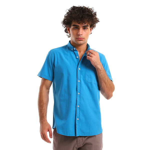 قميص بياقة مقلوبة وأكمام قصيرة وجيب أمامي