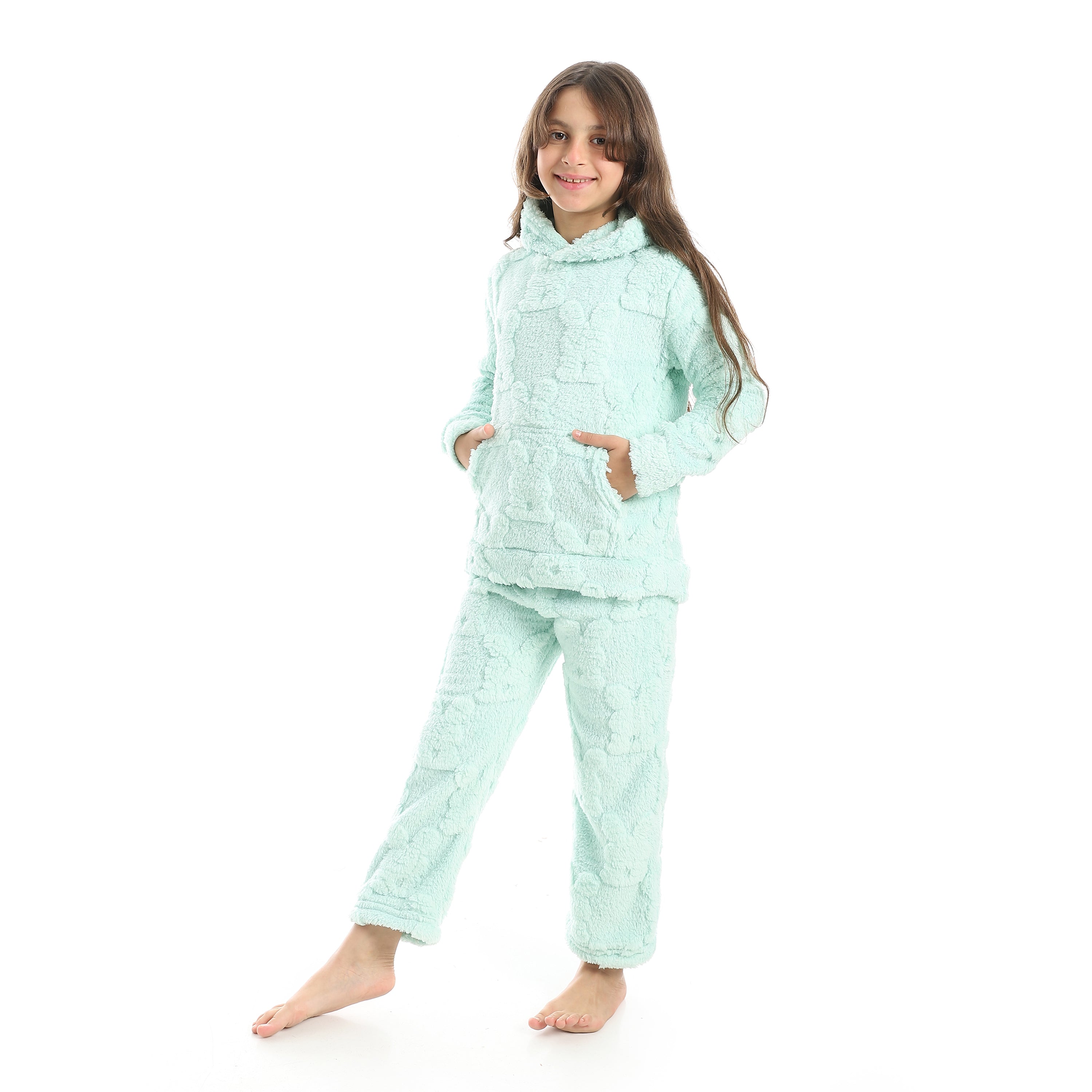 Self_Patterened_Long_Sleeves_Hooded_Pijama-Mint