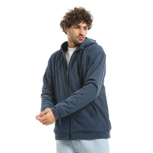 Navy_Stylish_Buttons_And_Zipper_Closure_Hooded_Jacket-Navy