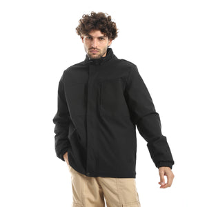 Gabardine_Zipper_Clossure_With_Turned_Down_Collar_Jacket___Black