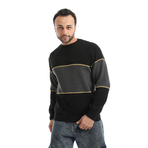 Wide_Stripped_With_Thin_Line_Round_Collar_Pullover_-_Grey_&_Black_&_yellow