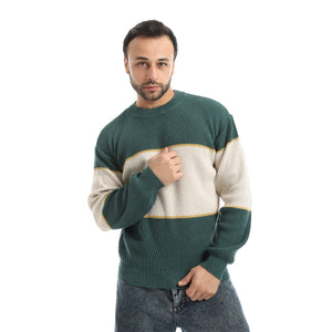 Round_Collar_Knitted_Long_Sleeves_Pullover_-_White_&_Beige_&_Green
