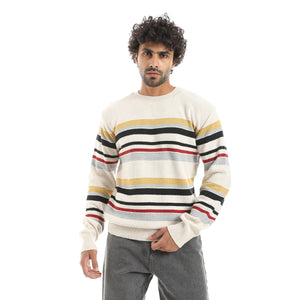 Knitted_Long_Sleeves_Round_Collar_Strpped_Pullover_-_Creamy