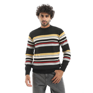 Stripped_Multicolour_Knitted_Round_Collar_Pullover_Black