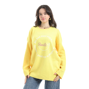 Printed_Round_Collar_Long_Sleeves_Yellow_Sweatshirt_Yellow