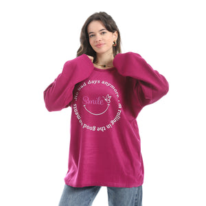 Printed_Round_Collar_Long_Sleeves_Dark_Pink_Sweatshirt_Purple