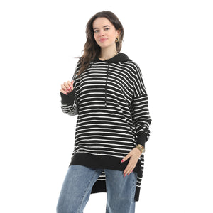Stripped_Long_Sleeves_Hoodie_Black_&_White_Multicolour