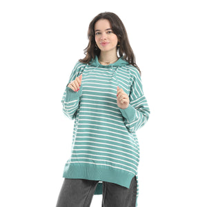 Stripped_Long_Sleeves_Hoodie_Mint_&_White_Multicolour