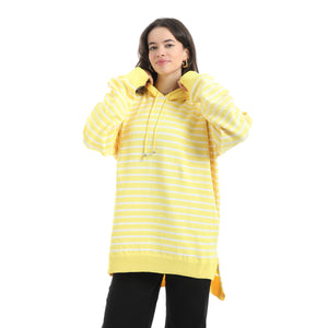 Stripped_Long_Sleeves_Hoodie_Yellow_&_White_Multicolour