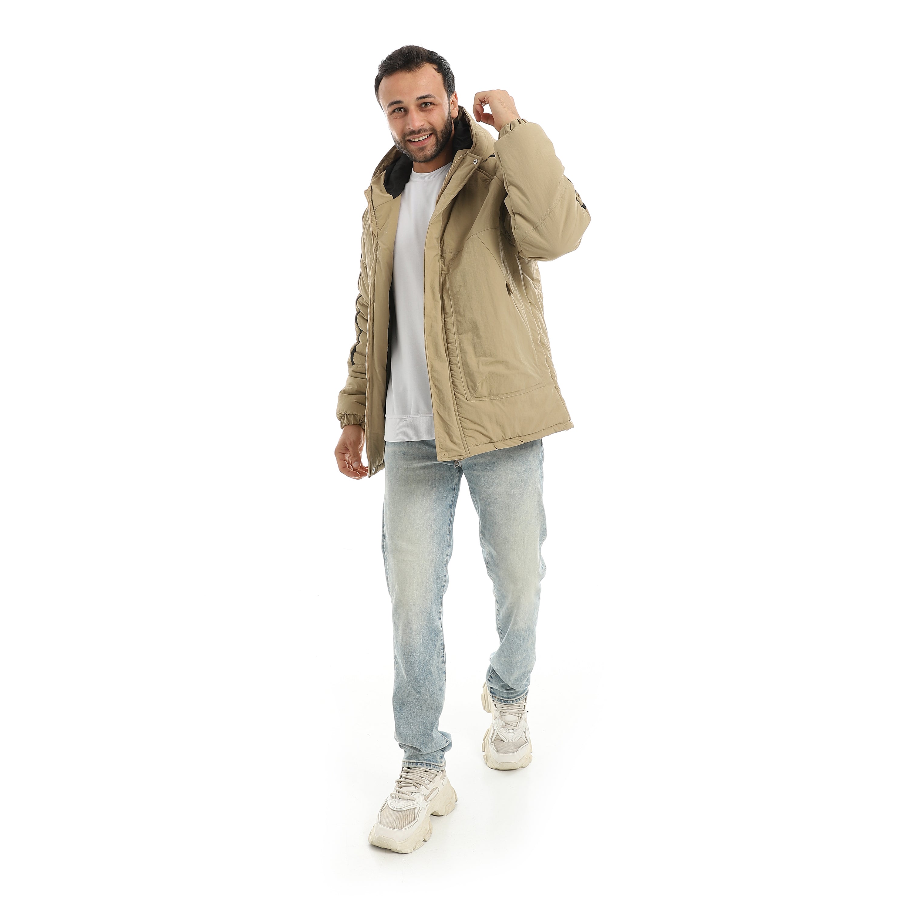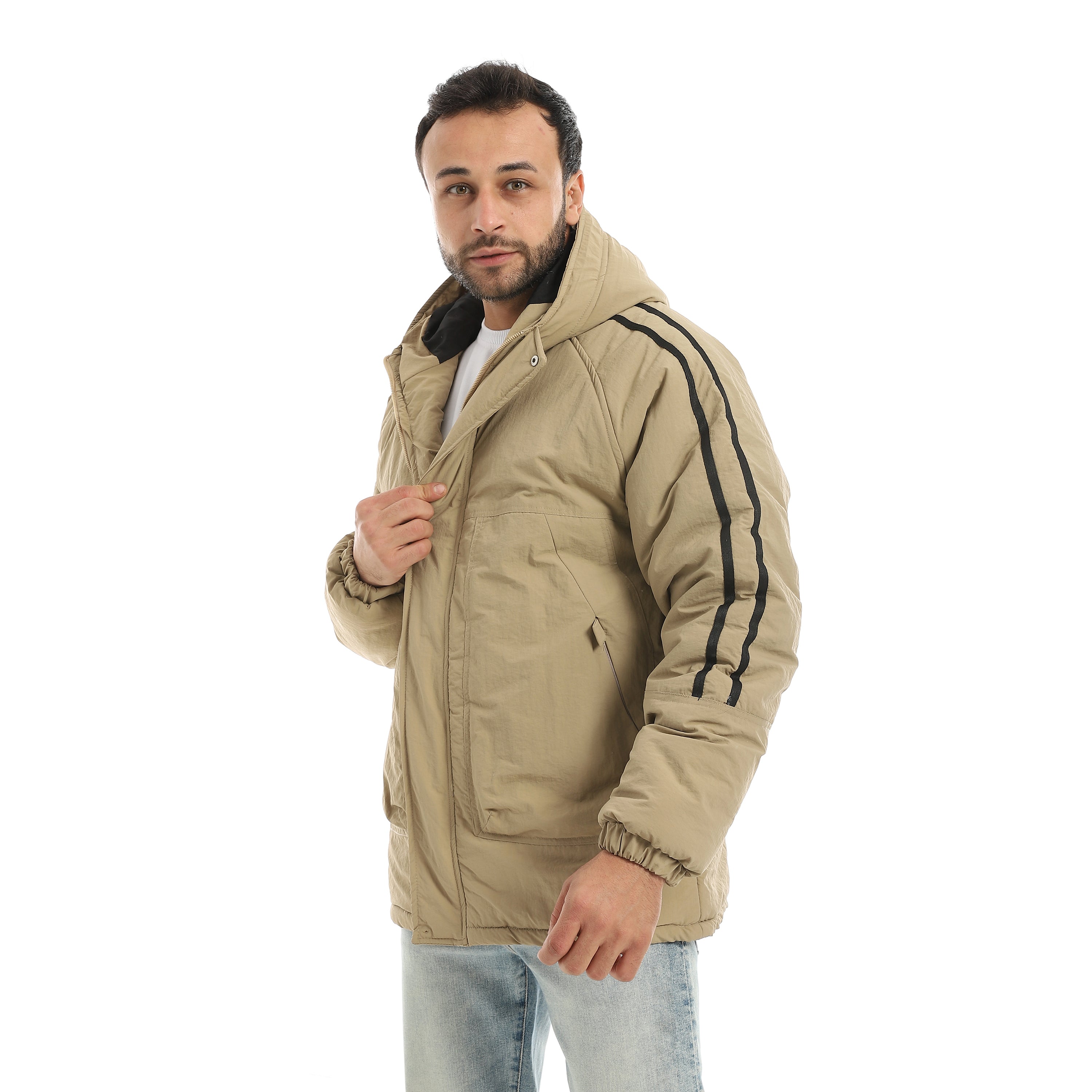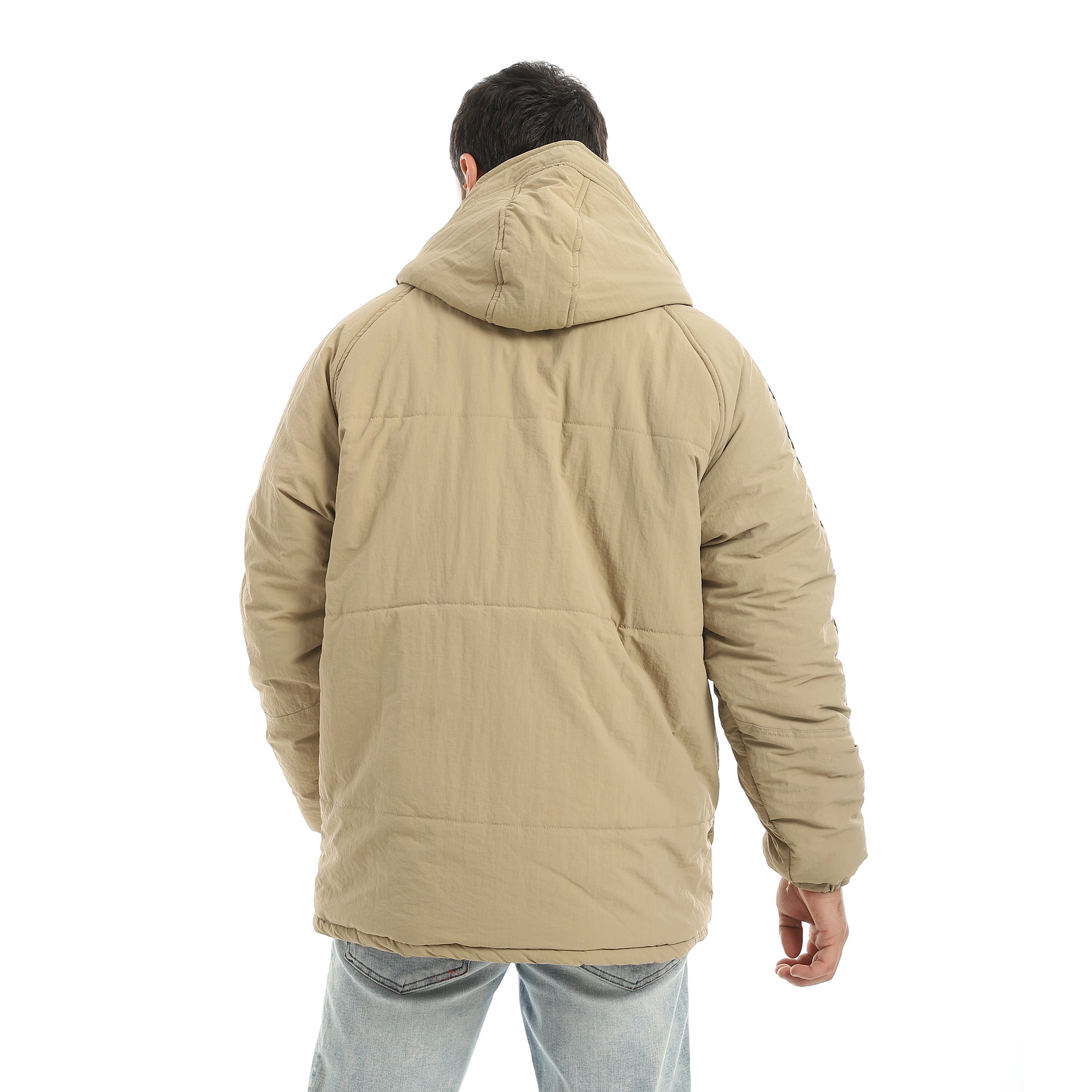 Beige_Stylish_Buttons_And_Zipper_Closure_Hooded_Jacket-Beige