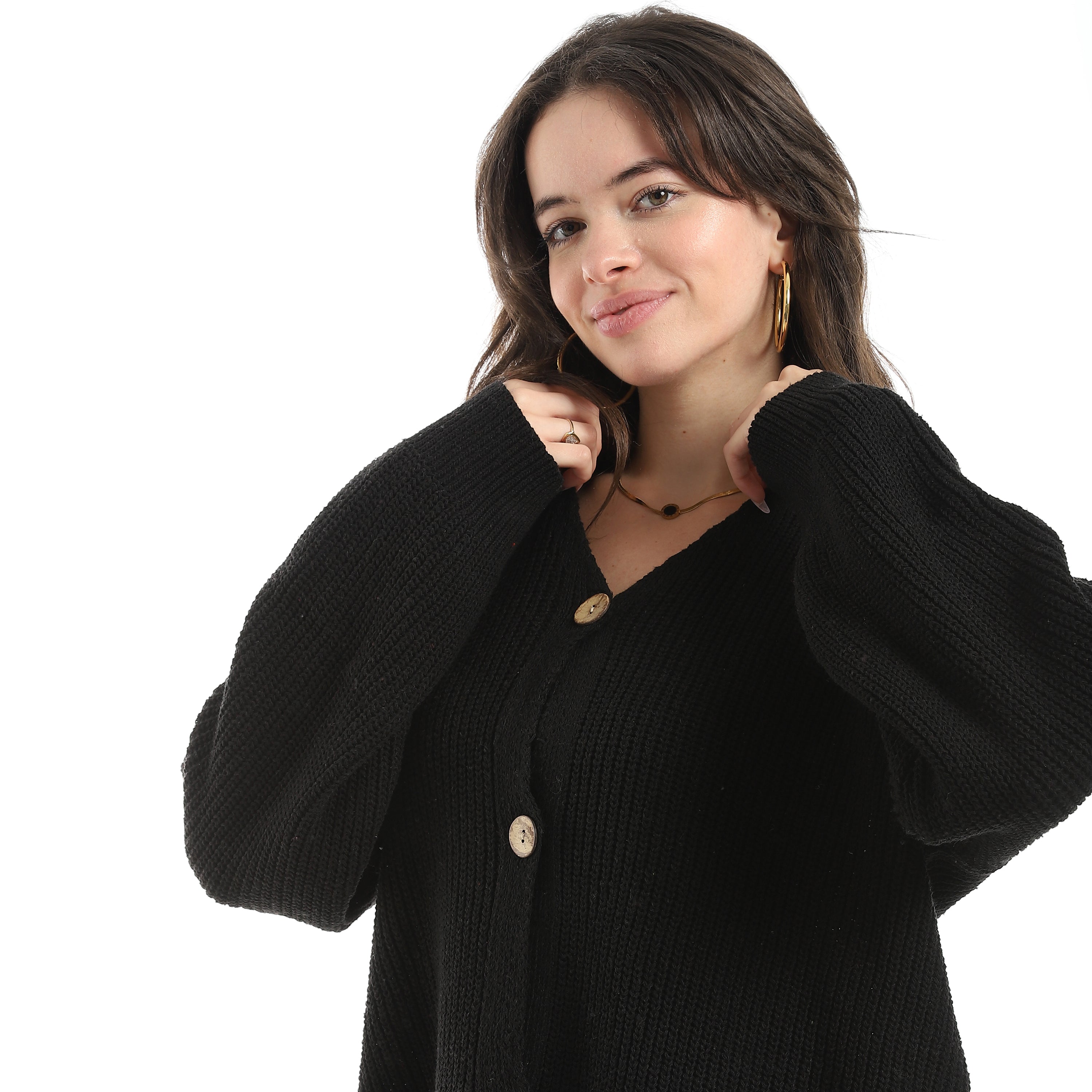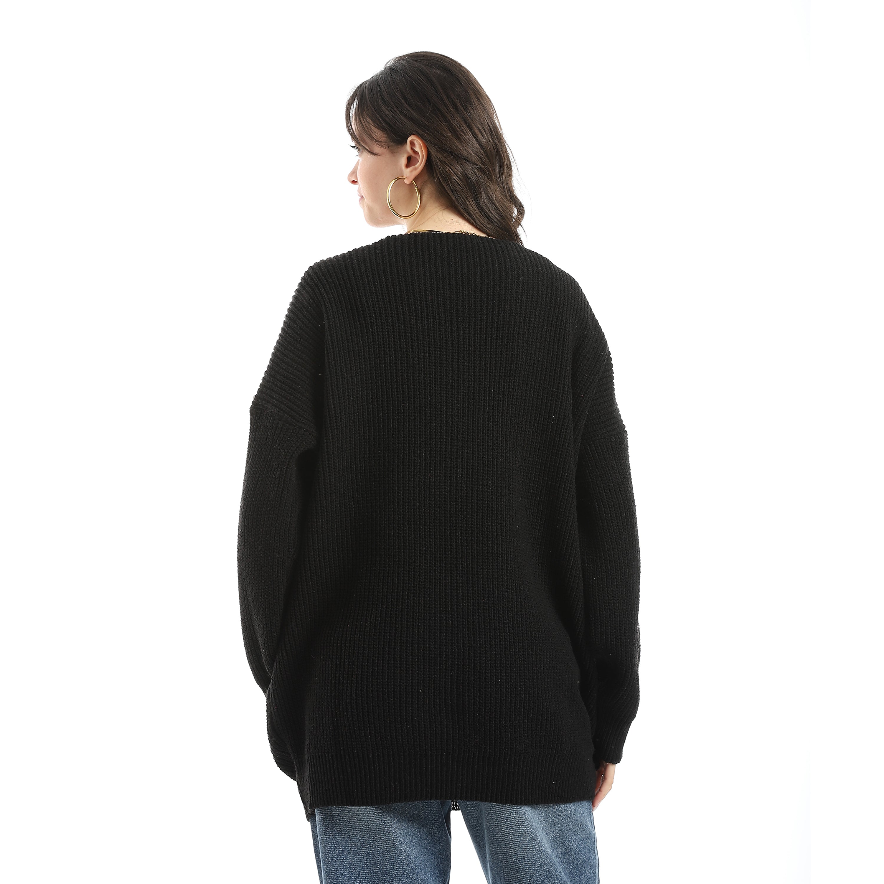 Long_Sleeves_Self_Patterened_Knitted_Pullover_-_Black