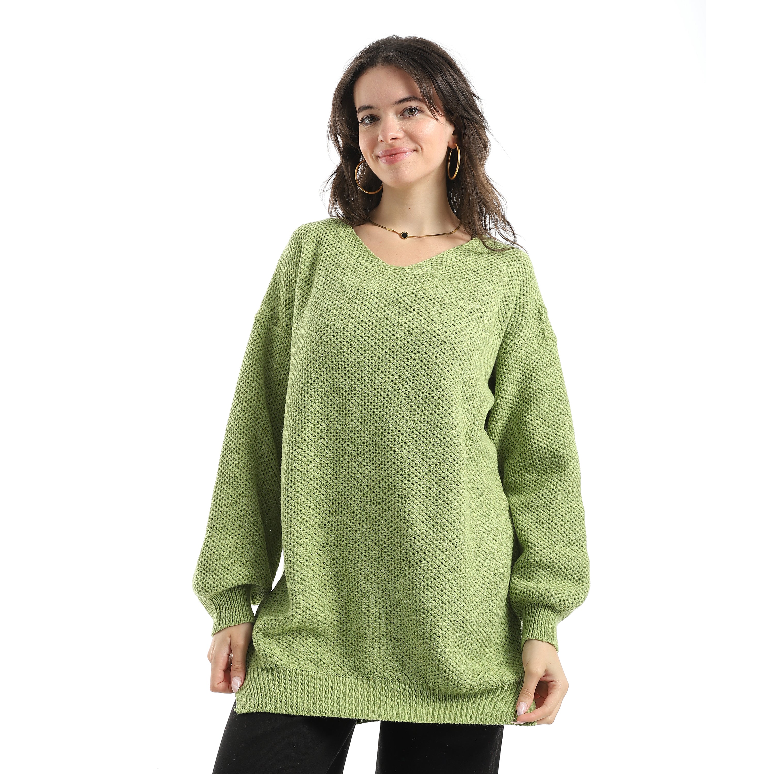 Long_Sleeves_Self_Patterened_Knitted_Pullover___Green