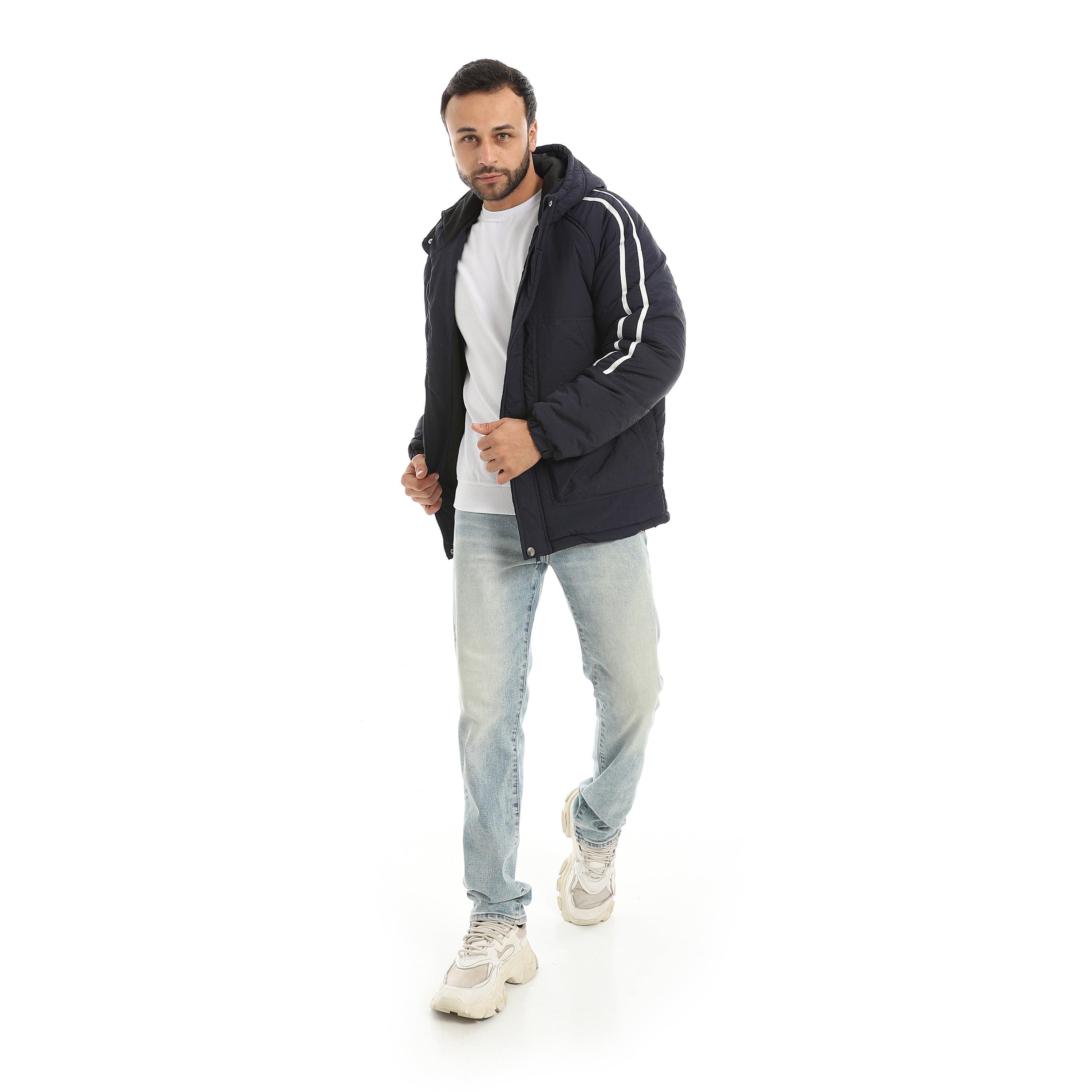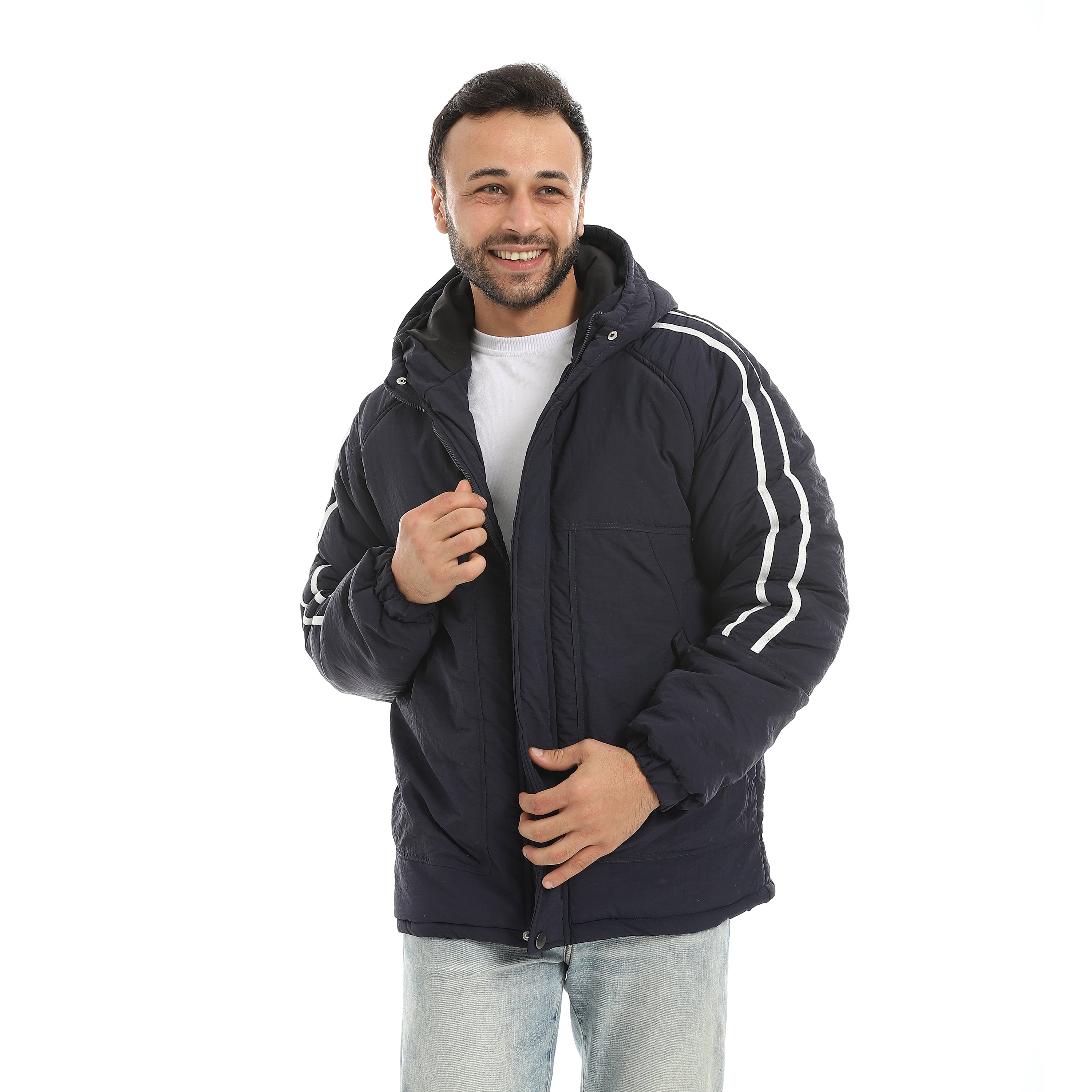 Navy_Stylish_Buttons_And_Zipper_Closure_Hooded_Jacket-Navy