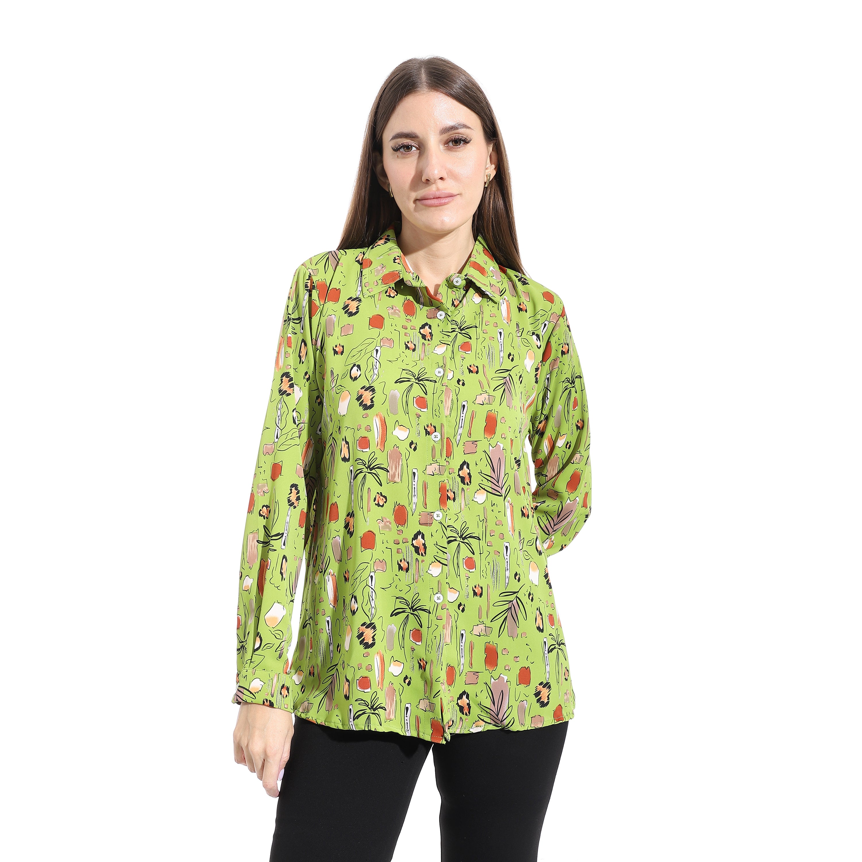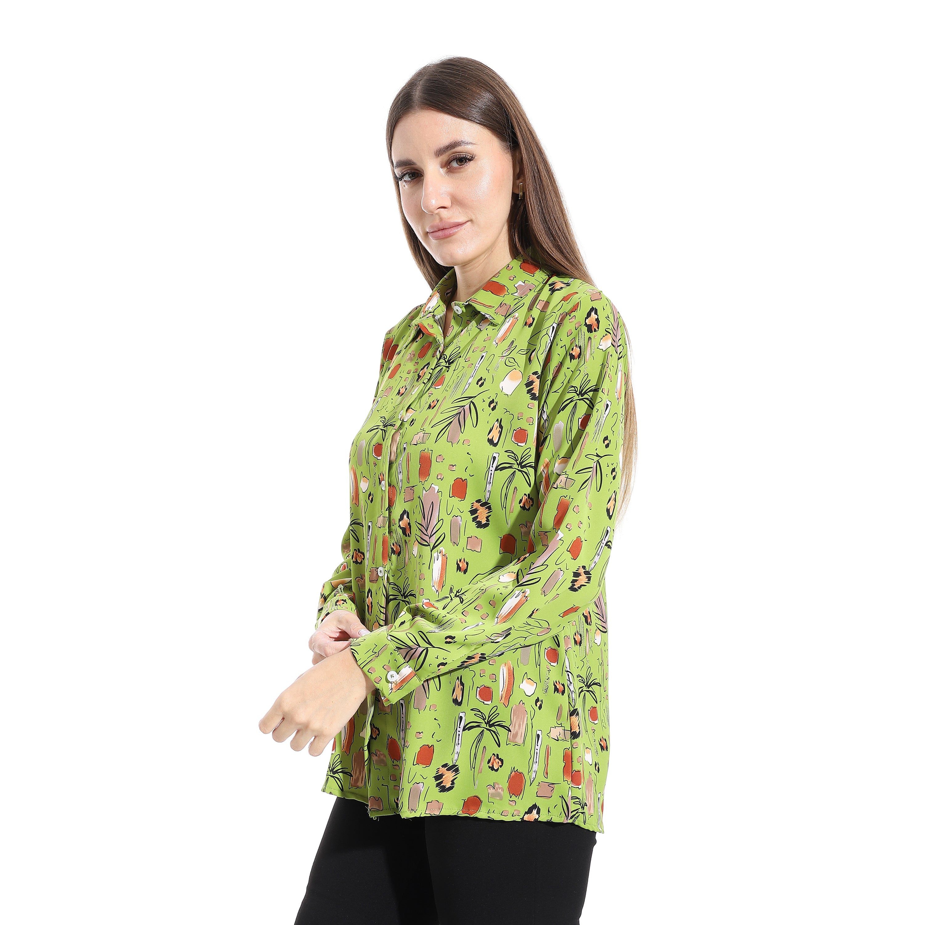 Turned_Down_Collar_Long_Sleeves_Blouse__-_Green