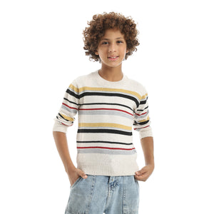 Knitted_Crew_Neck_Stripped_Pullover_-_Beige_&_White_&_Olive