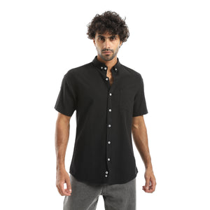 Turned_Down_Collar_Button_Closure_Long_Sleeves_Casual_Shirt___Black