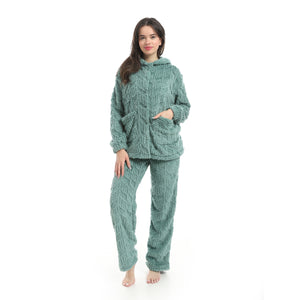 Olive_Long_Sleeves_Textured_Velvet_Hooded_Pajama_Set-Olive