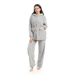 Light_Grey_Long_Sleeves_Textured_Velvet_Hooded_Pajama_Set-Light_Grey