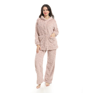Dusty_Rose_Long_Sleeves_Textured_Velvet_Hooded_Pajama_Set-Dusty_Rose