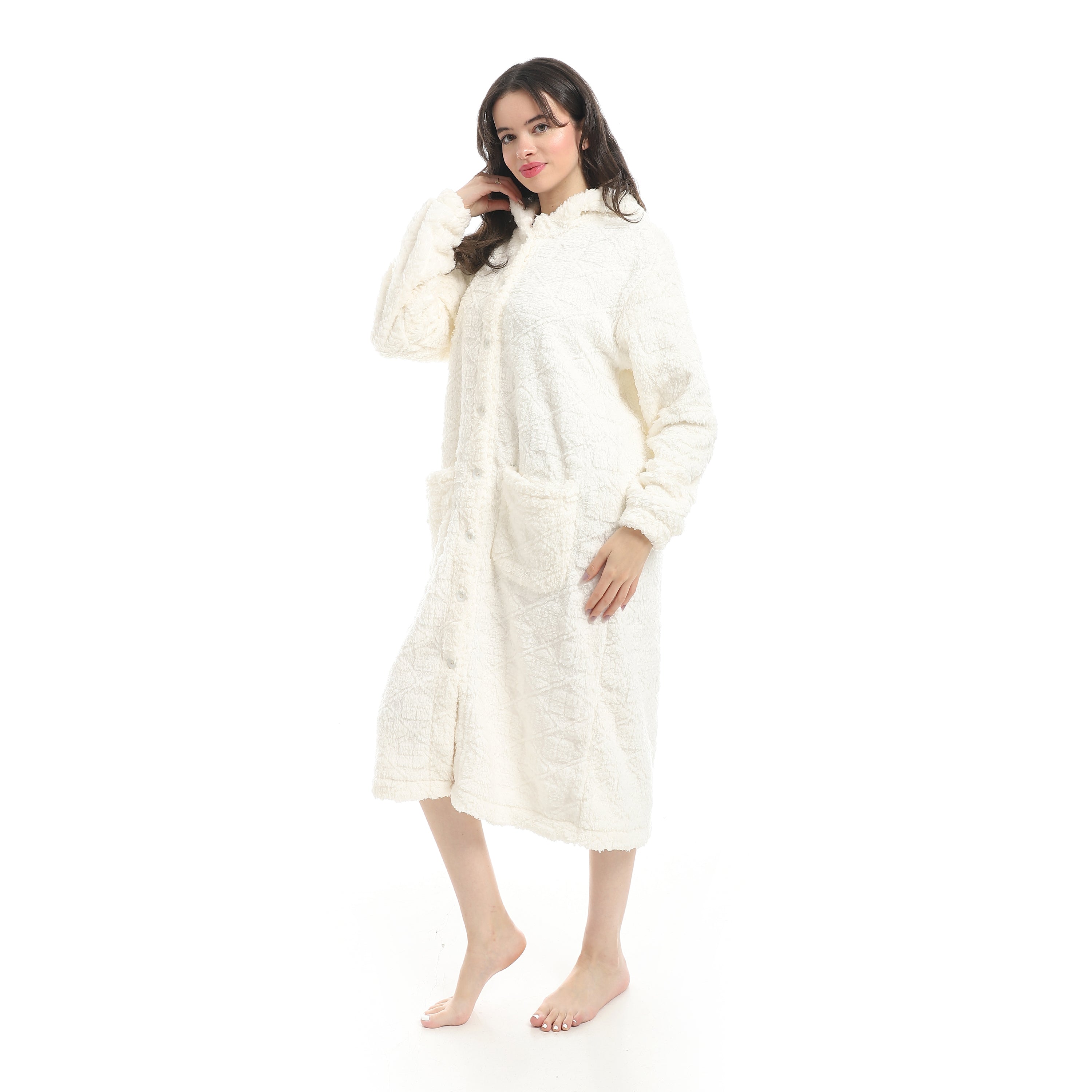 White_Hooded_Textured_Velvet_Sleepshirt-White