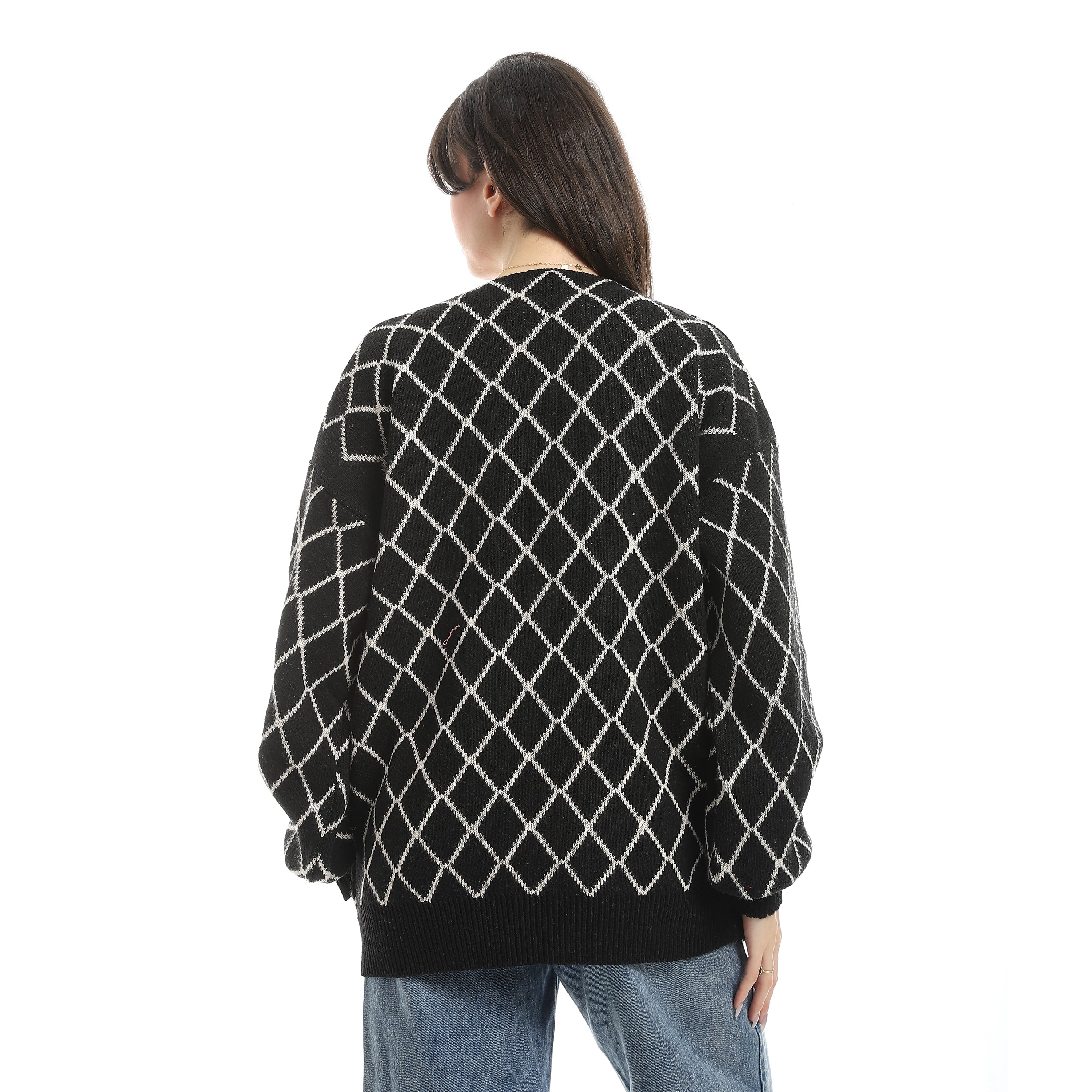 Lattice_Pattern_Open_Neckline_Black_Cardigan-Black