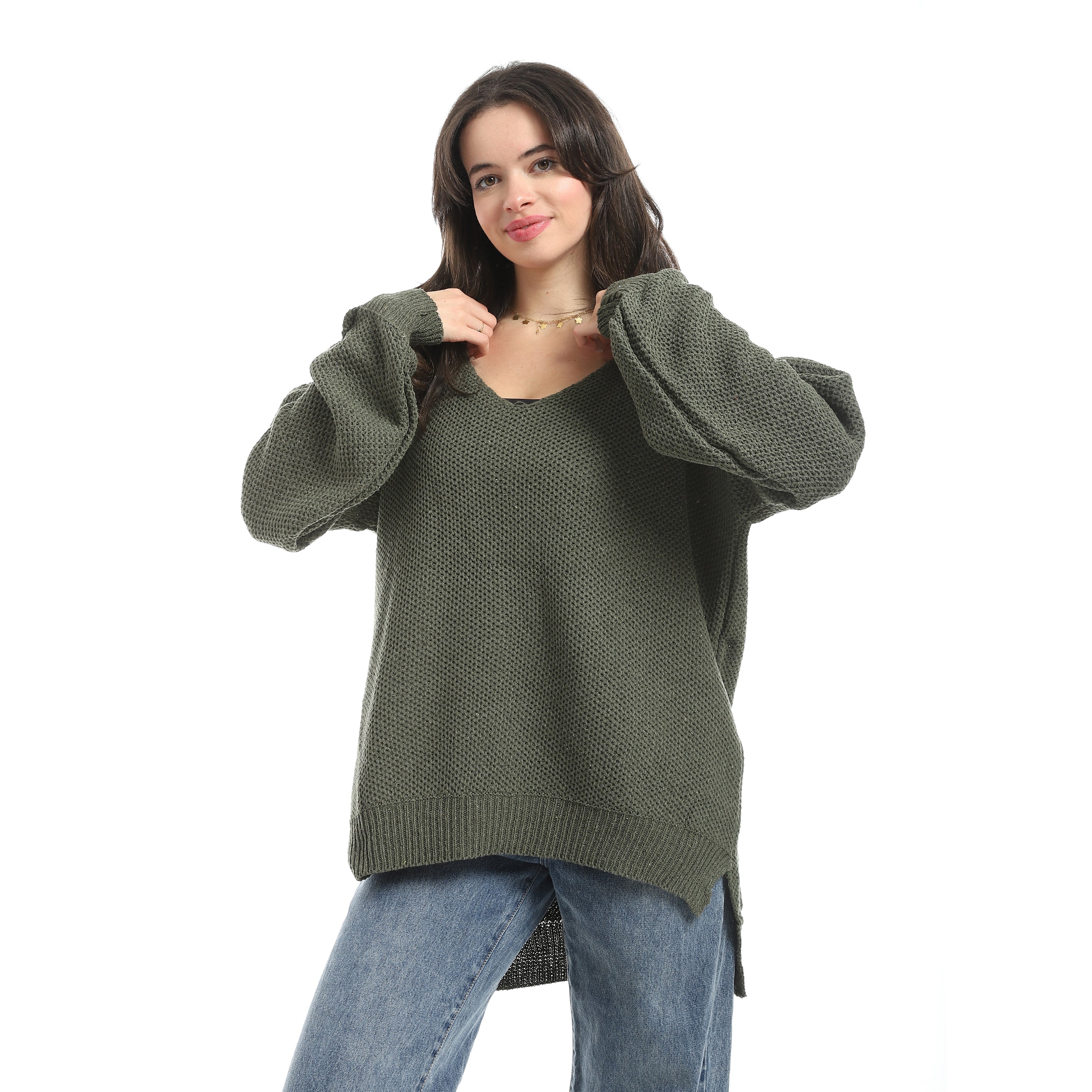 V-Neck_Knitted_Plain_Pullover_-_Olive