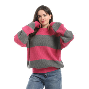 Wide_Striped_Loose_Fit_Slip_On_Pullover_-_Hot_Pink_&_Grey