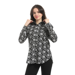 Floral_Pattern_Turn_Down_Collar_Shirt_-_Black_&_White