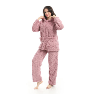 Kashmir_Long_Sleeves_Textured_Velvet_Hooded_Pajama_Set-Pink