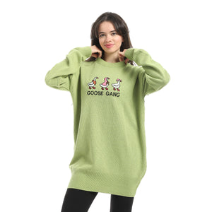 Embrodried_"Goose_Gang"_Long_Sleeves_Light_Green_Pullover_Green