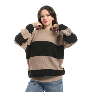 Wide_Striped_Loose_Fit_Slip_On_Pullover_-_Dark_Beige_&_Black
