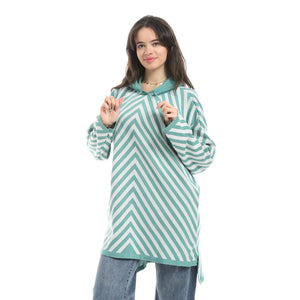 Stripped_Long_Sleeves_Hoodie_Mint_&_White_Multicolour