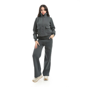 Dark_Grey_Zipped_Long_Sleeves_Elastic_Waist_Pants_Set-Dark_Grey