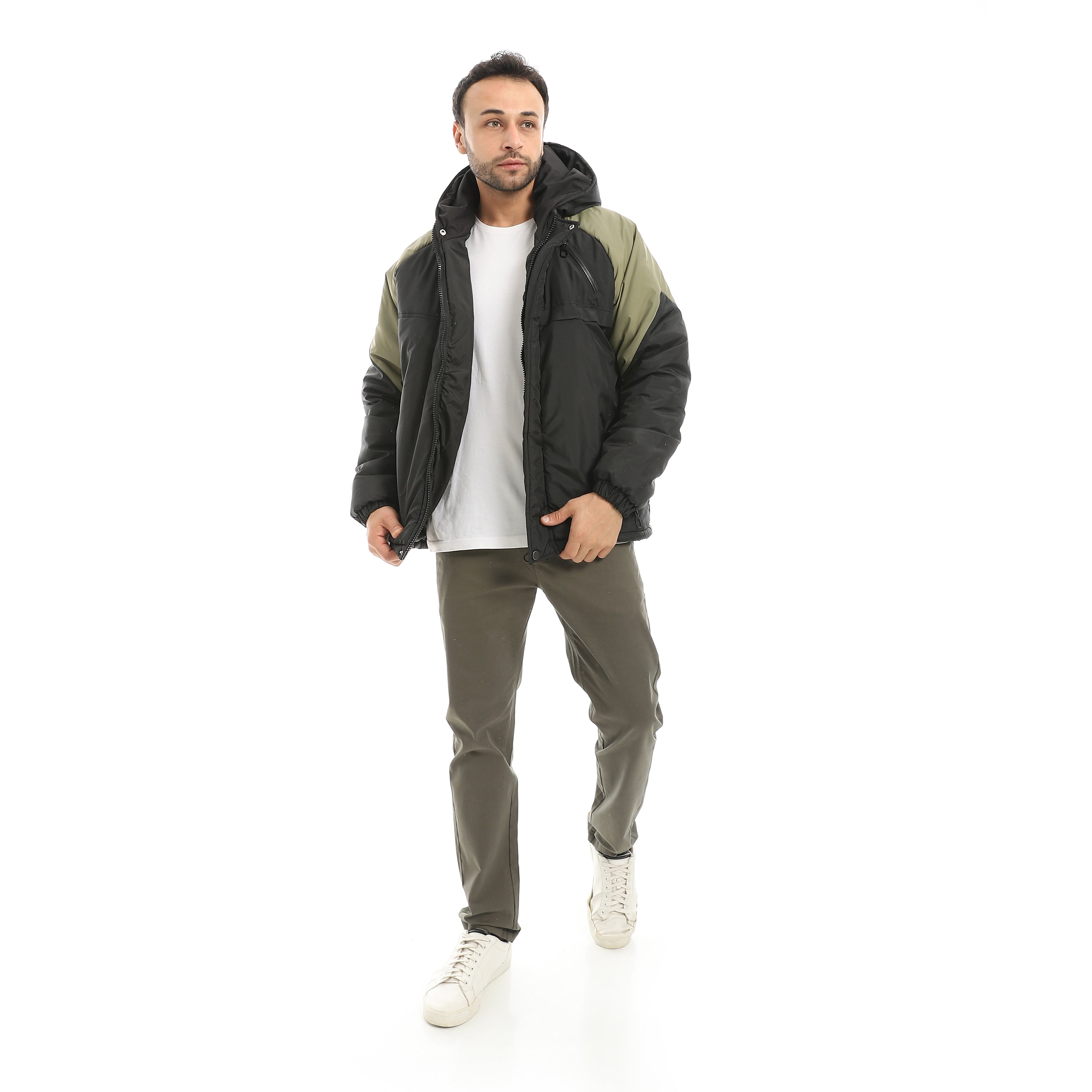 Hooded_Waterproof_Zipper_Closure_Jacket-Black_&_Light_Green_