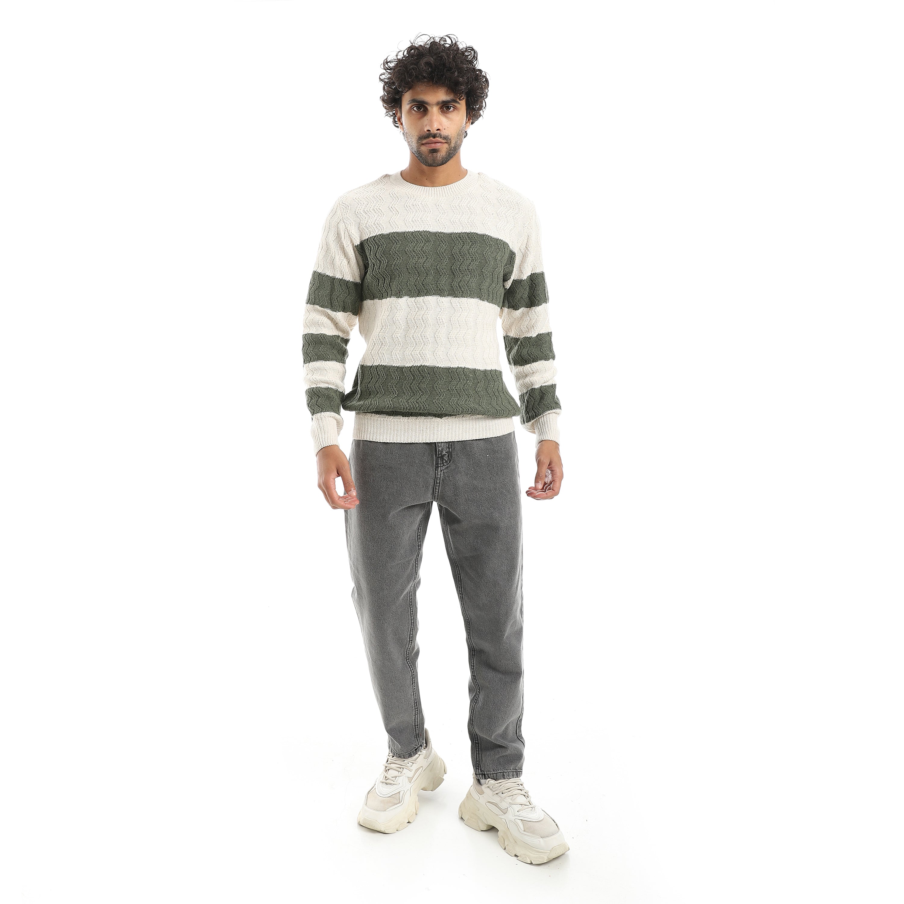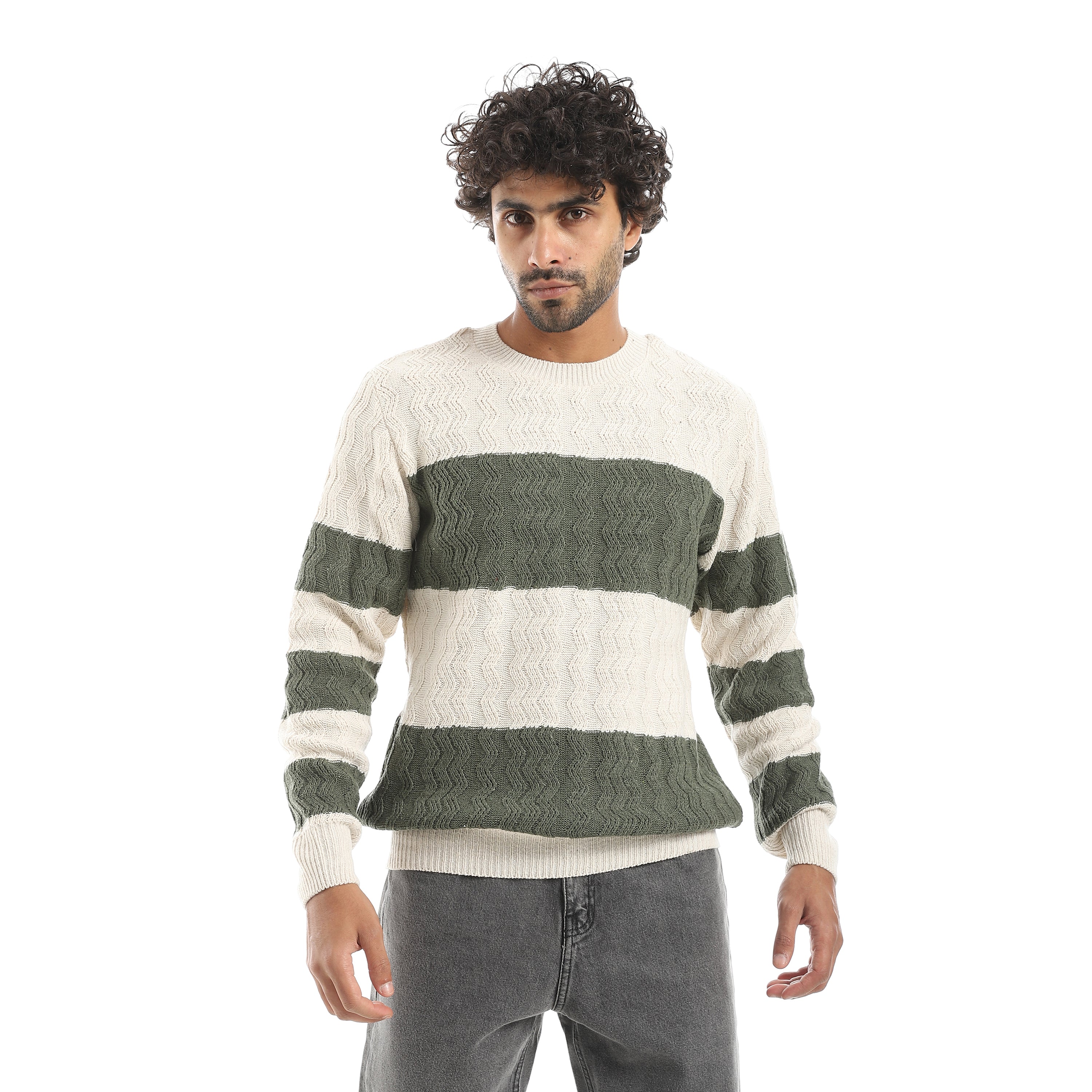 Knitted_Strapped_Creamy_&_Olive_Pullover_Creamy_&_Olive