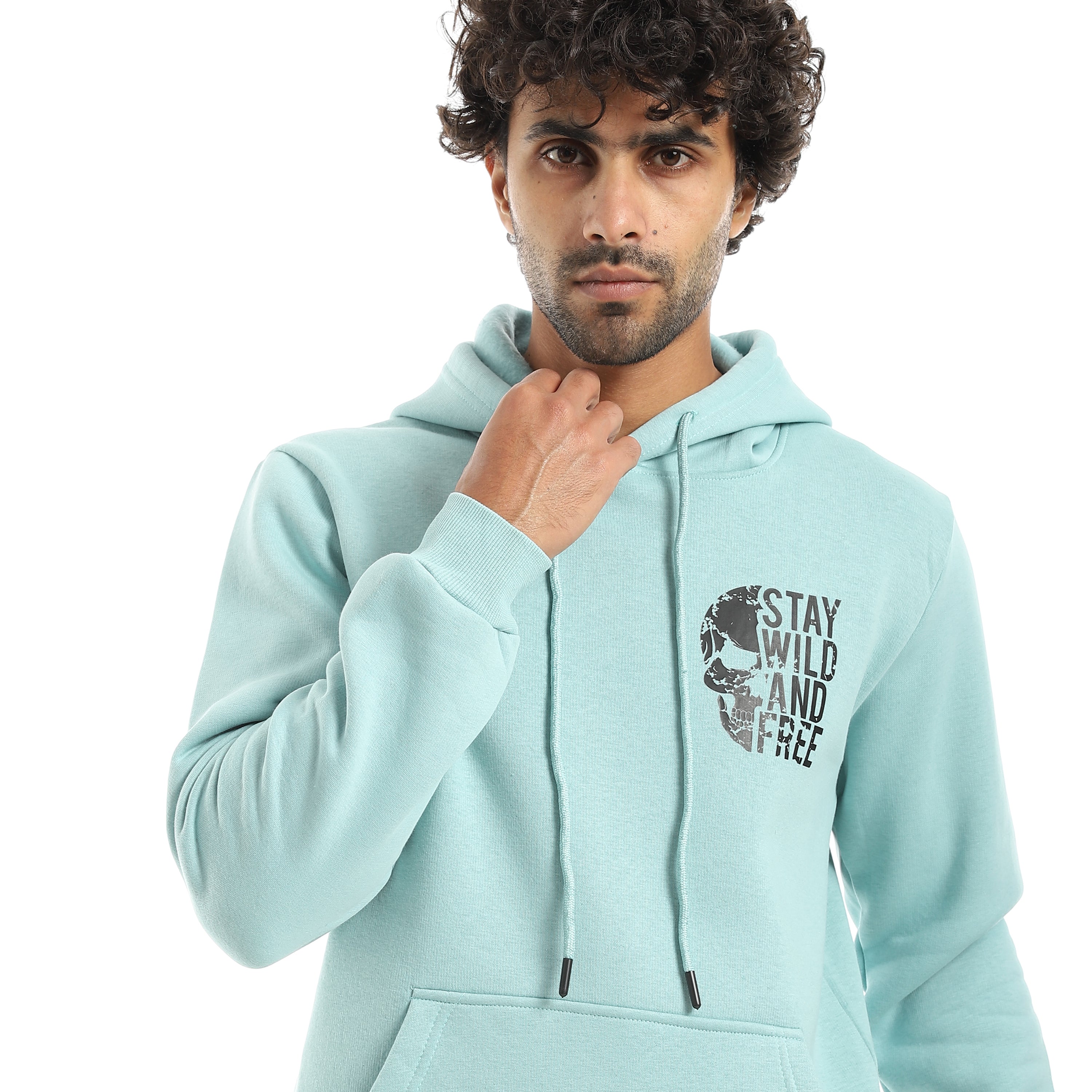 Printed_Hooded_With_Drawstringd_Mint_Green_Sweatshirt_Mint_Green