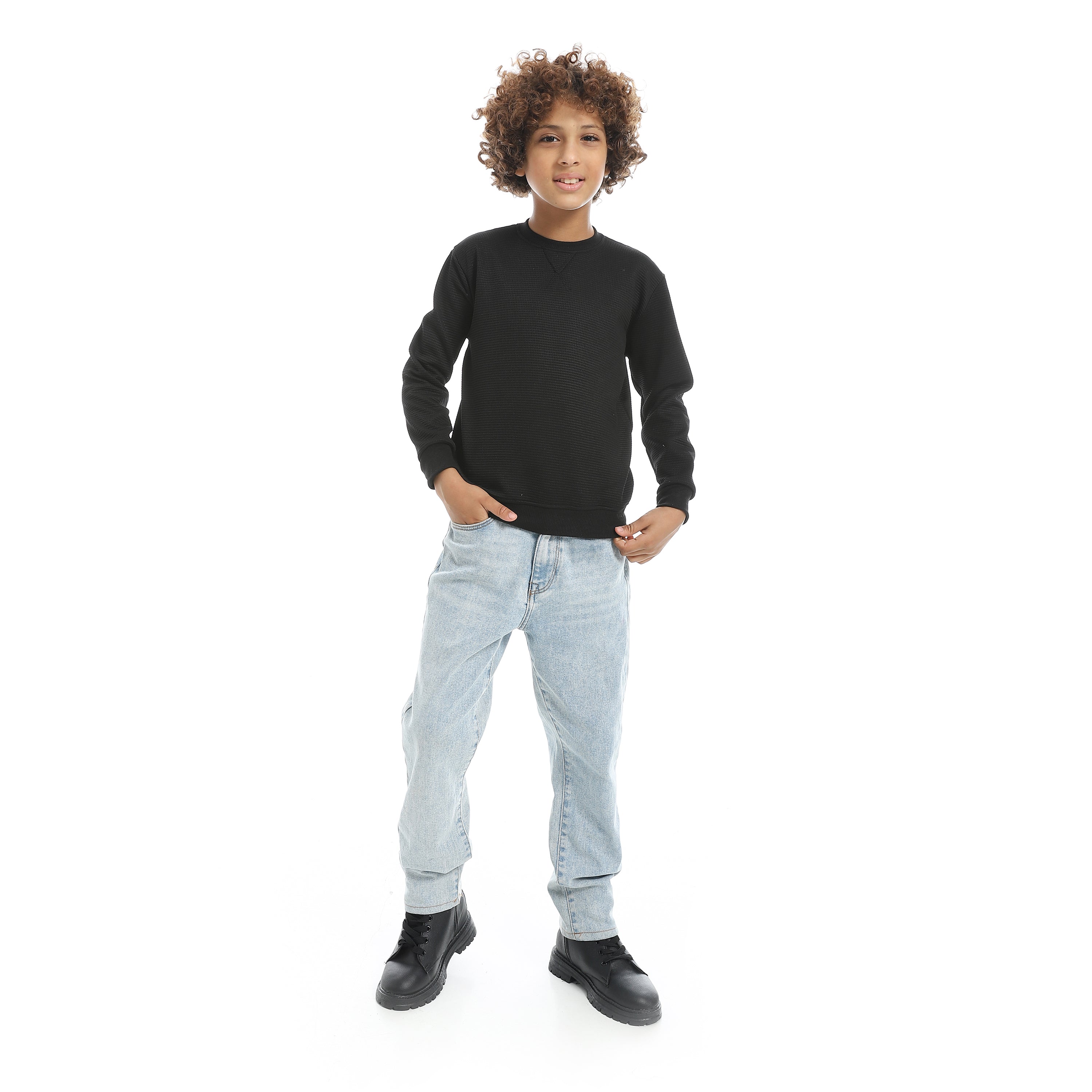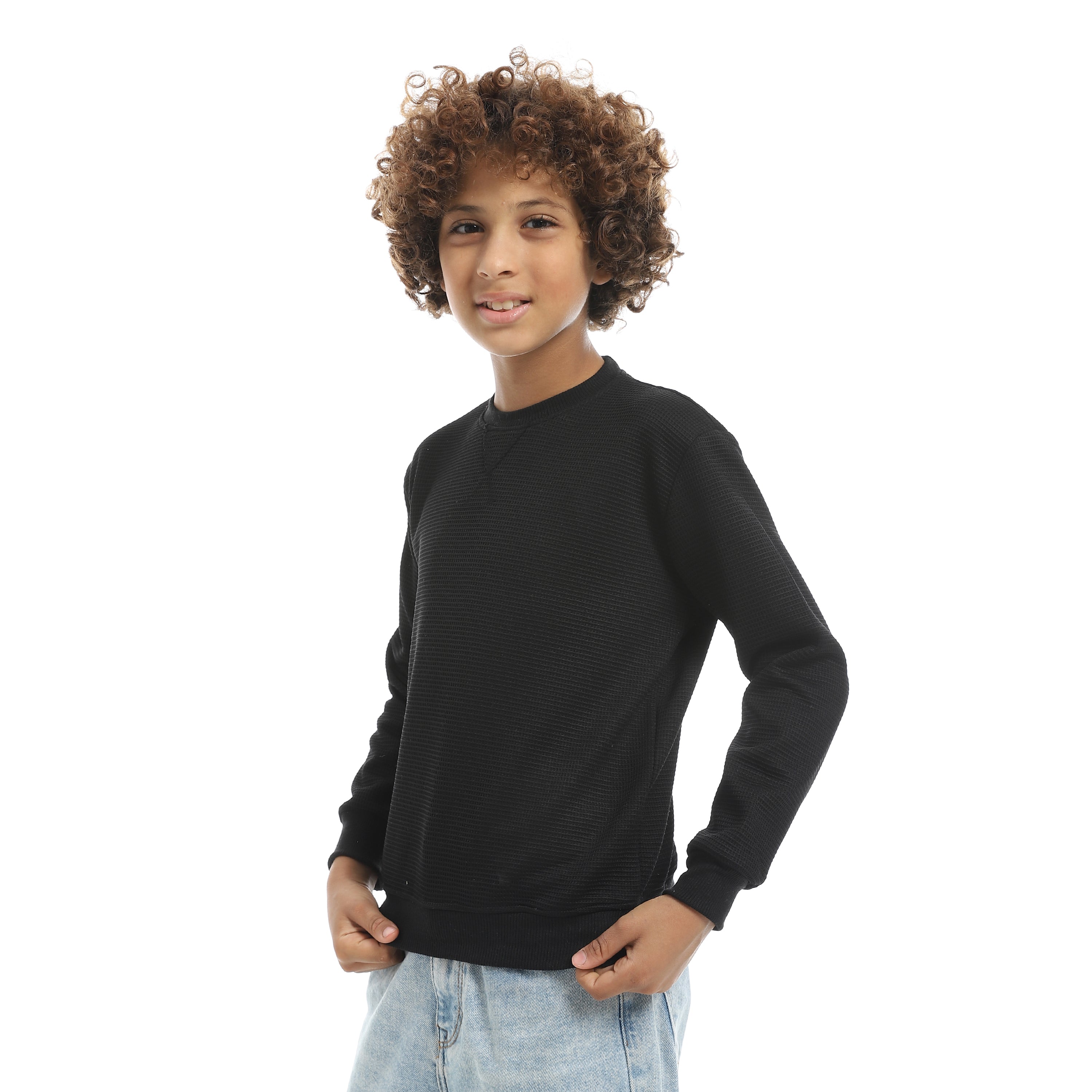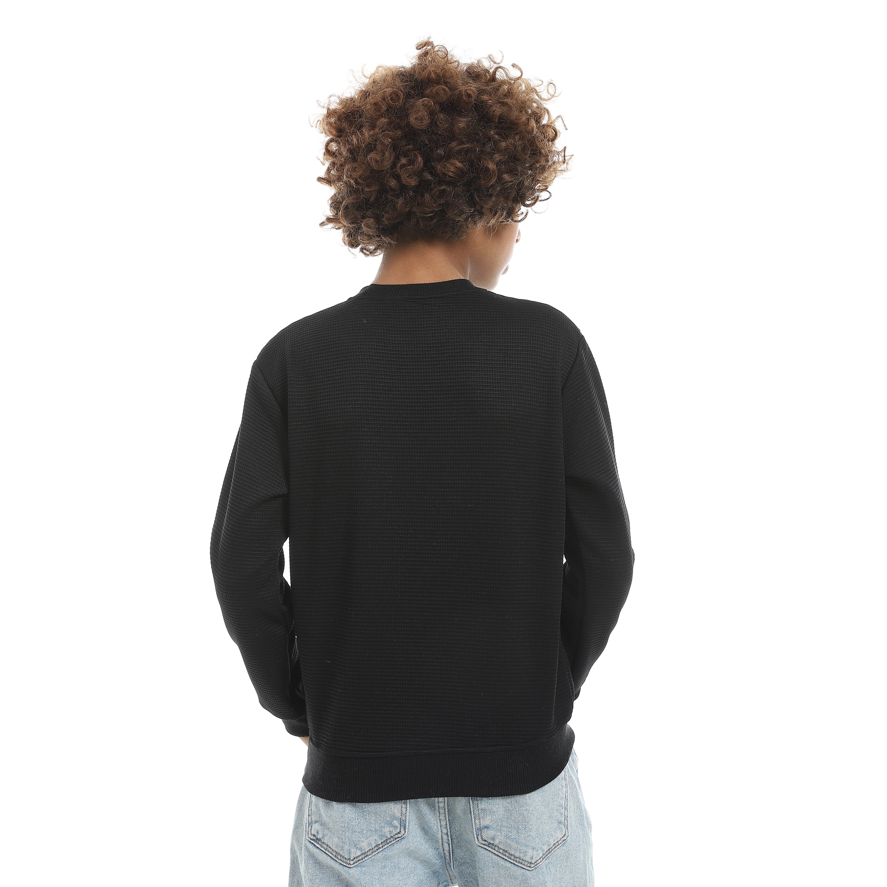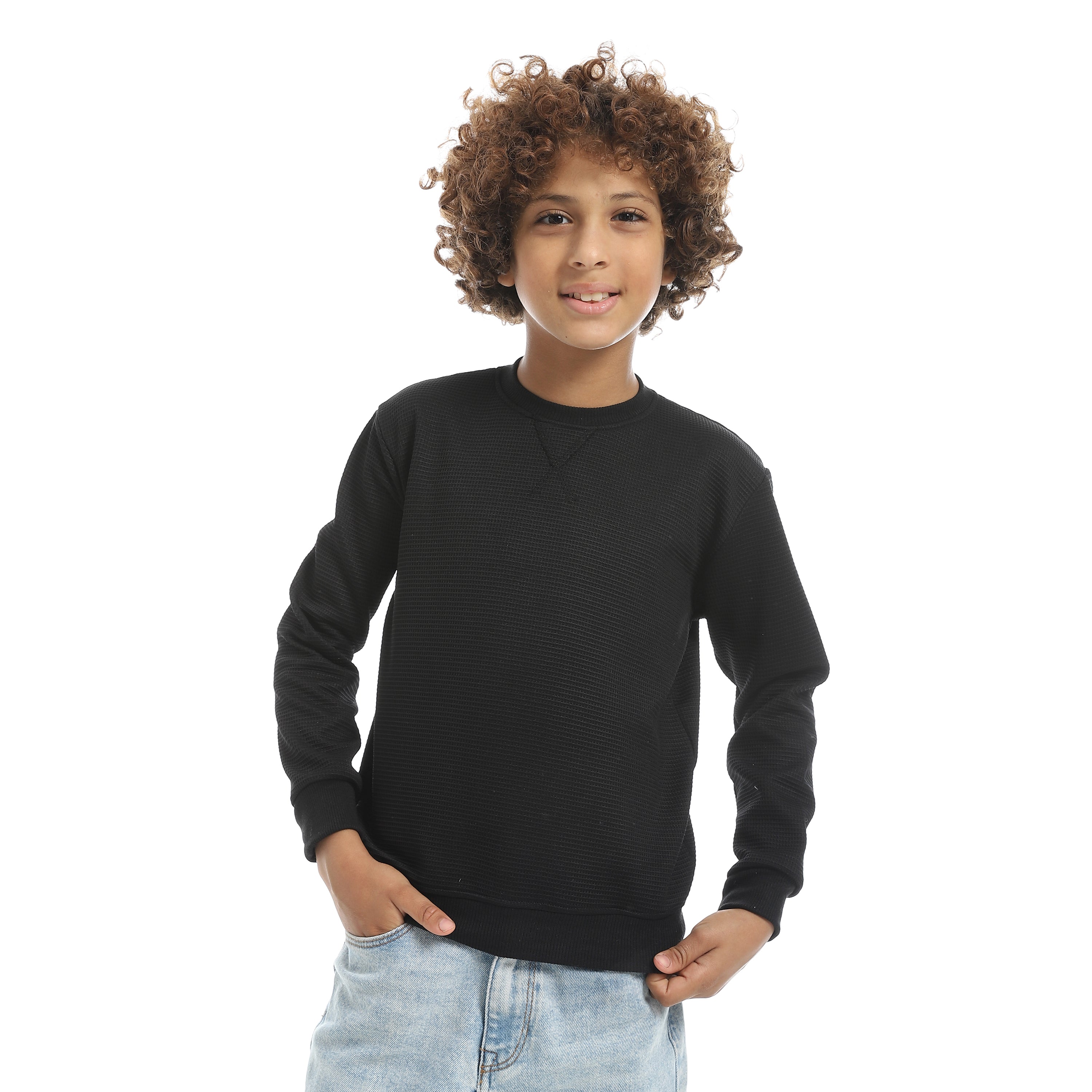 Round_Collar_Fleeced_Self_Patterened_Plain_Pullover_-_Black