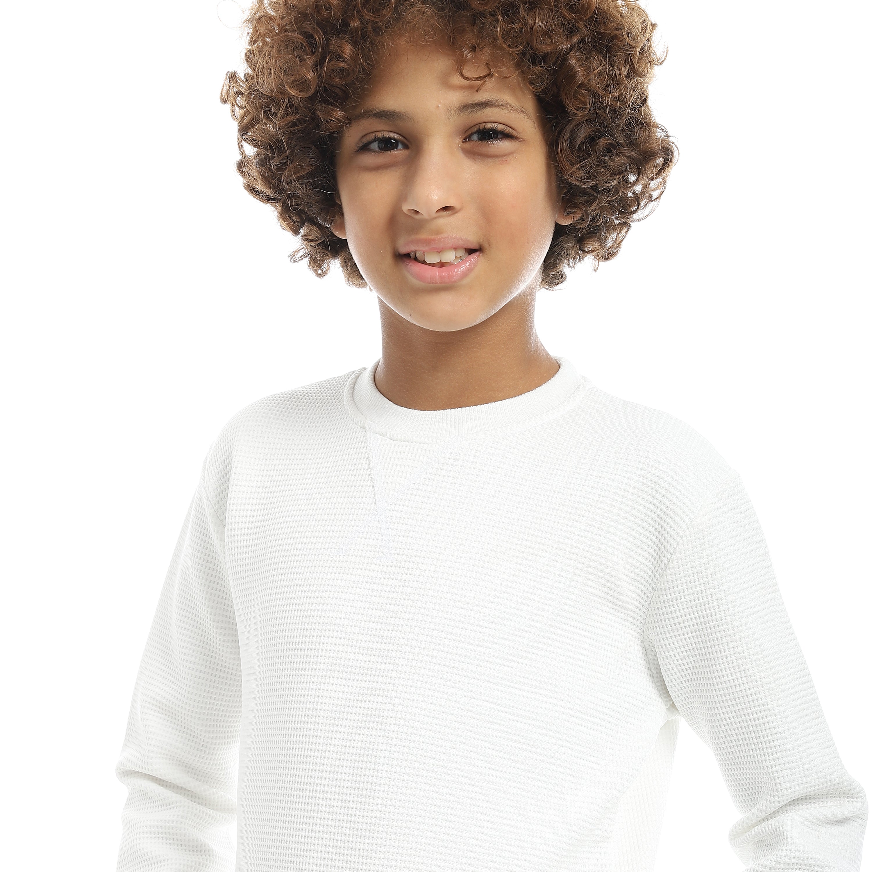 Round_Collar_Fleeced_Self_Patterened_Plain_Pullover_-_White