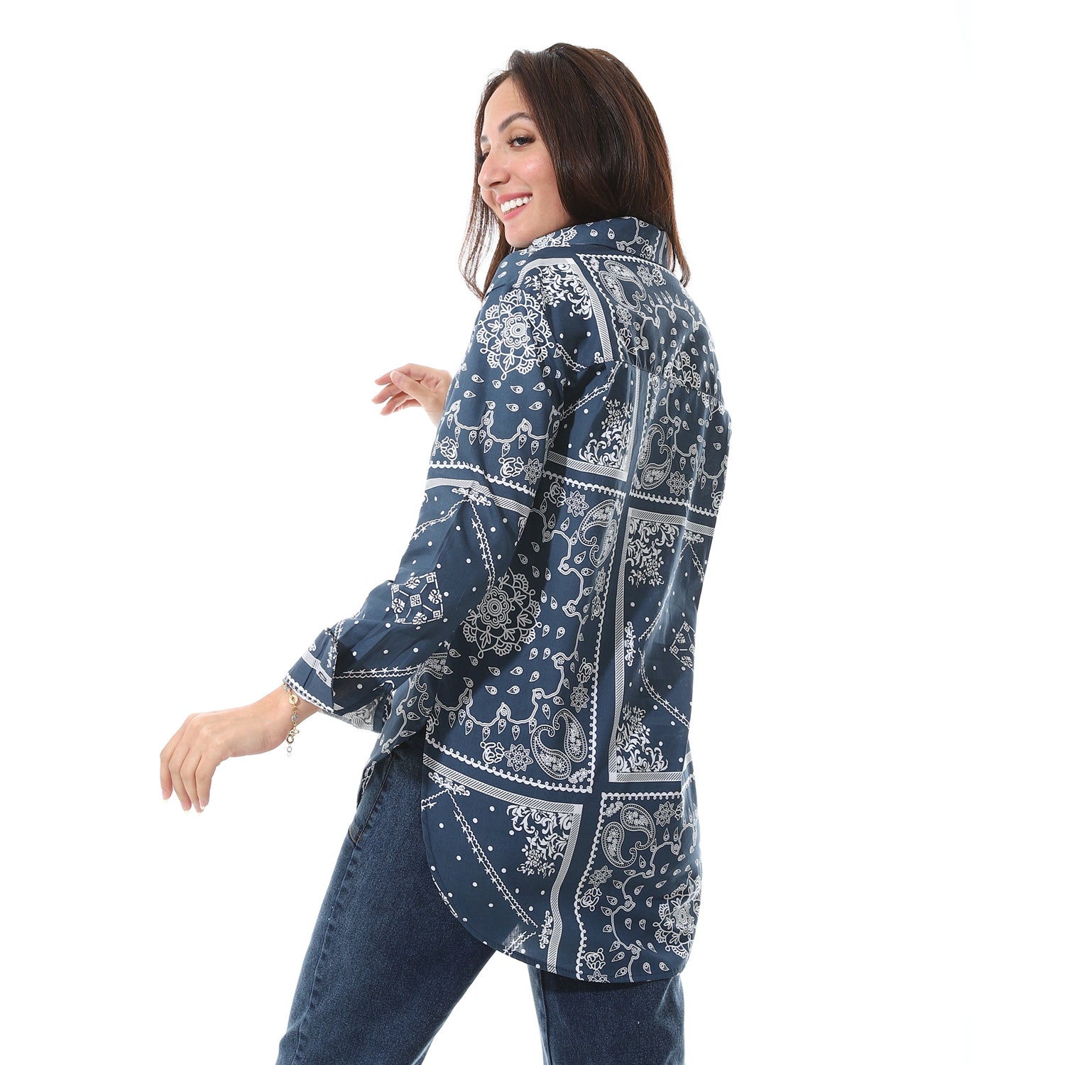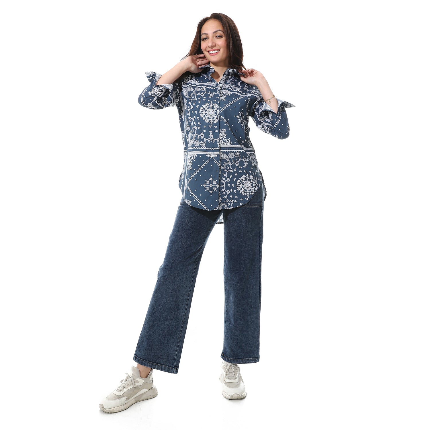Self_Pattern_High-Low_Shirt_-_Navy_Blue_&_White